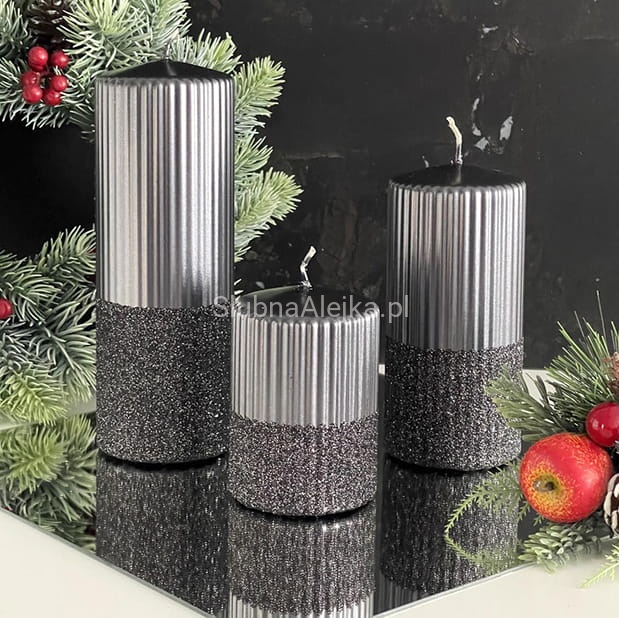 Świeca Ozdobna Pieńkowa Rylen Brokat Metalik 15cm Czarny