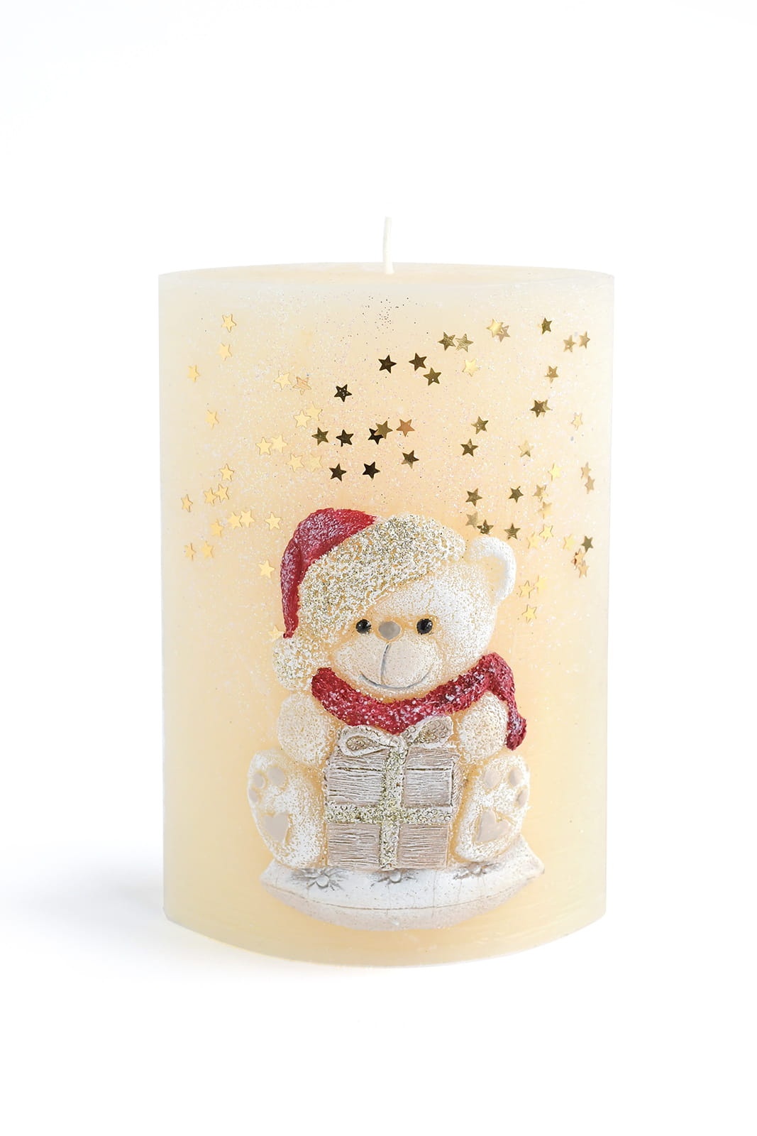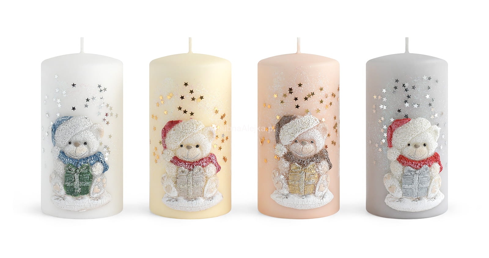 Świeca Ozdobna Pieńkowa Teddy Świąteczny 14cm WYBIERZ KOLOR!