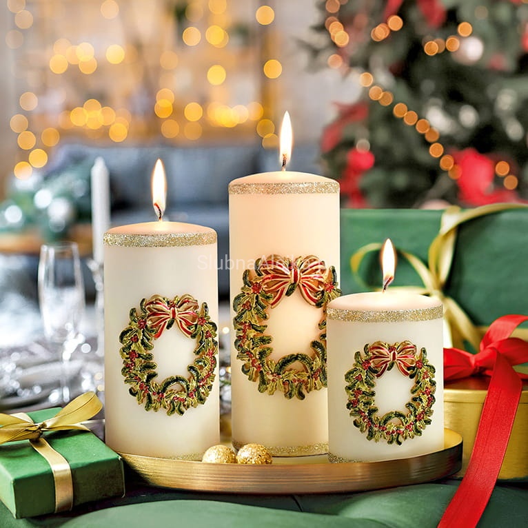 Świeca pieńkowa Wianek to wyjątkowo elegancka świeca w stylu rystykalnym. Ma gładką strukturę zdobioną ozdobnym wiankiem świątecznym. Wpisuje się w każde wnętrza. Świeca jest w całości zabarwiona i pali się bardzo długo równym i jasnym płomieniem. Świeca z serii Wianek to atrakcyjny dodatek do większych pomieszczeń, np. salonów i kuchni połączonych z jadalnią. Świece pieńkowe w kilku odcieniach idealnie sprawdzą się w czasie organizacji różnego rodzaju przyjęć świątecznych i nie tylko. Kilka takich świec o różnej wysokości i średnicy bez żadnych dodatków potrafi uformować znakomitą dekorację.