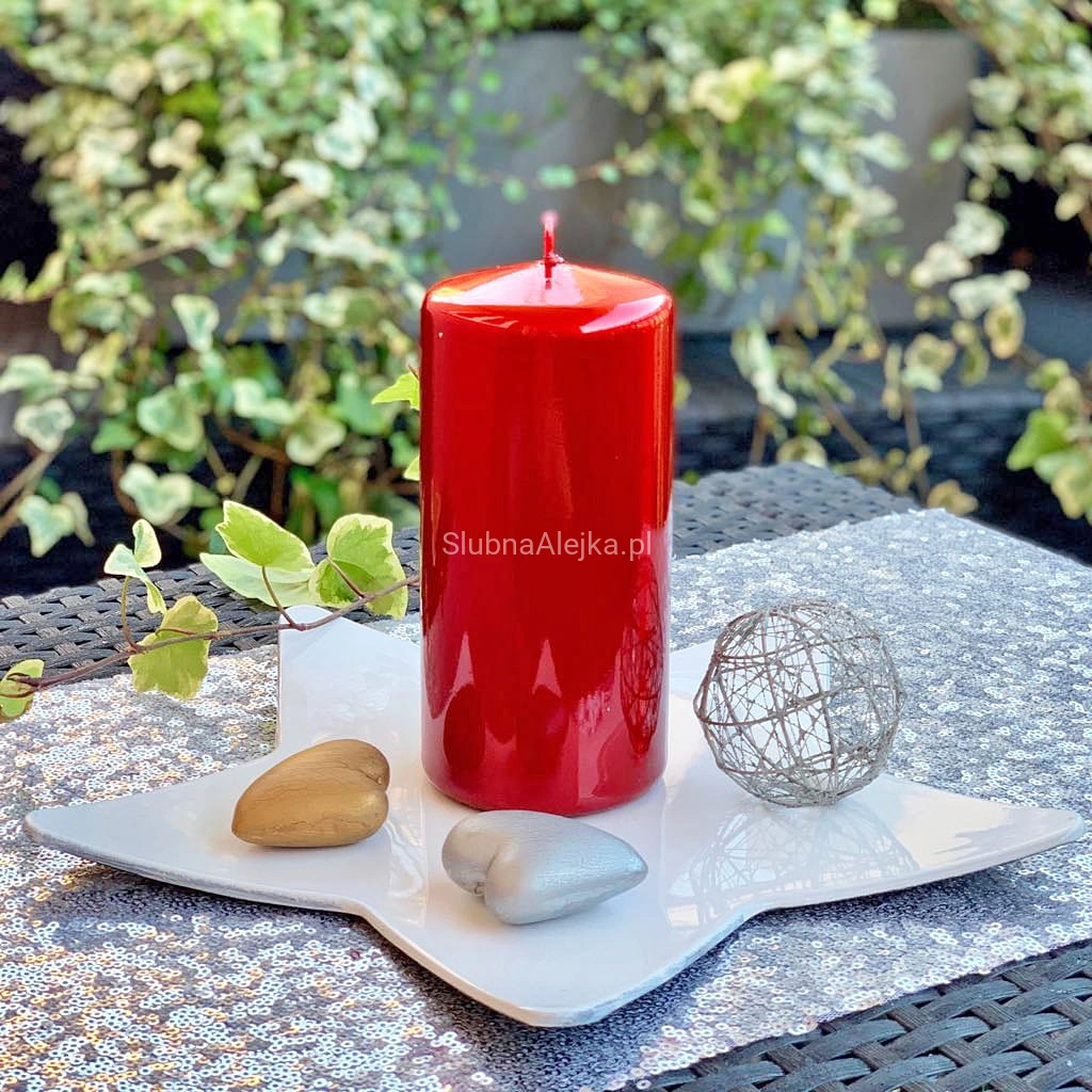 Świeca Ozdobna Pieńkowa Wysoki Połysk Czerwony 15cm Φ 7cm