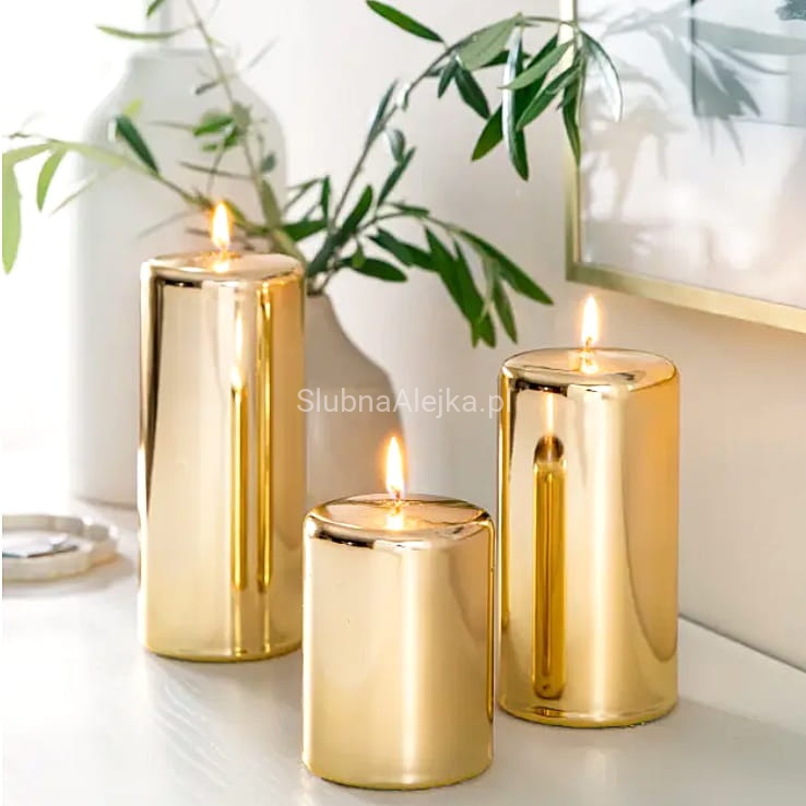 Świeca Pieńkowa Lustrzana Mirror Effect Złota 10cm Φ8cm
