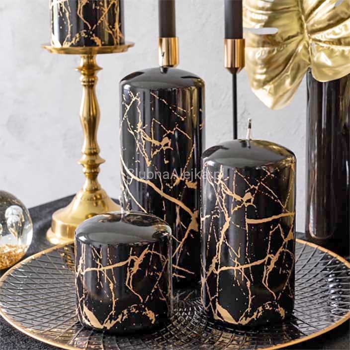Świeca Pieńkowa Marmur Czarno-Złoty 20cm Φ8