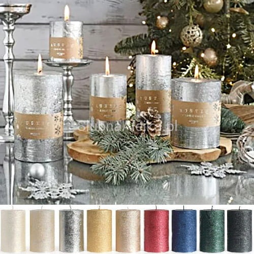 Świeca Pieńkowa Ozdobna Rustykalna Metalik 12cm Φ7cm WYBIERZ KOLOR!