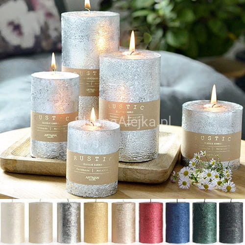 Świeca pieńkowa ozdobna Rustykalna to świeca produkowana przez renomowanego producenta świec. To połączenie piękna i prostoty w jednym. Jej chropowata powierzchnia i minimalistyczny wygląd podkreślają wygląd wnętrza. Metaliczne wykończenie sprawia, że współgrają z klasycznym wnętrzem dodając mu niezwykłej elegancji. Prezentuje sie najlepiej z dekoracjami zarówno w stylu prostym, jaki i wytwornym. Idealna na wystawne przyjęcia lub na elegancki prezent.