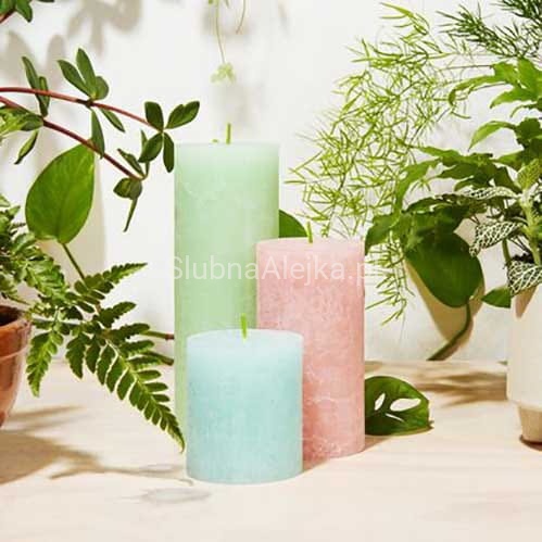 Świeca pieńkowa z przepięknej pastelowej kolekcji Bolsius Divine Earth renomowanego producenta swiec BOLSIUS. Ma surową formę i strukturę przez co bardzo wpisuje się w nowoczesne wnętrza i prosty minimalistyczny styl. Świeca jest w całości zabarwiona z ciekawim bawełnianym knotem i pali się bardzo długo równym i jasnym płomieniem. Bezzapachowa wykonana z wosku roślinnego i parafiny. Świeca z serii Rustic to atrakcyjny dodatek do większych pomieszczeń, np. salonów i kuchni połączonych z jadalnią. Matowe świece kule w odcieniach pastelowych idealnie sprawdzą się w czasie organizacji różnego rodzaju przyjęć. Kilka takich świec o różnej wysokości i średnicy bez żadnych dodatków potrafi uformować znakomitą dekorację. Do wyboru piękna paleta kolorów. Czas palenia 30 godzin.