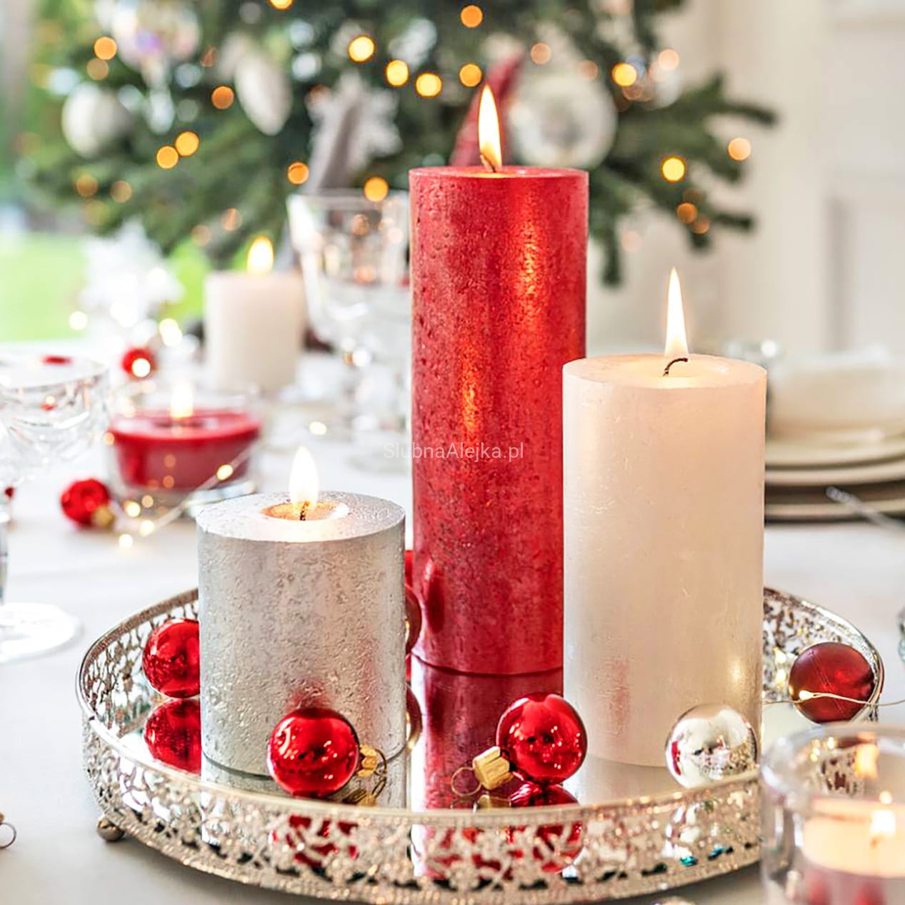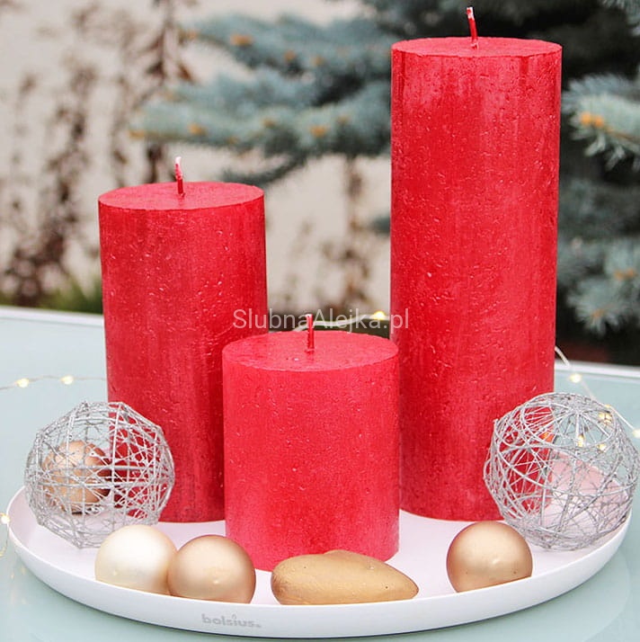 Świeca Pieńkowa Rustic BOLSIUS Shimmer Czerwona 19cm