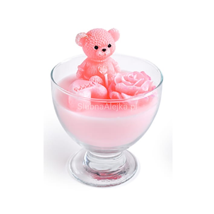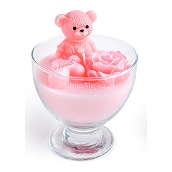 Świeca Zapachowa Miś w Pucharku Różowy 15cm