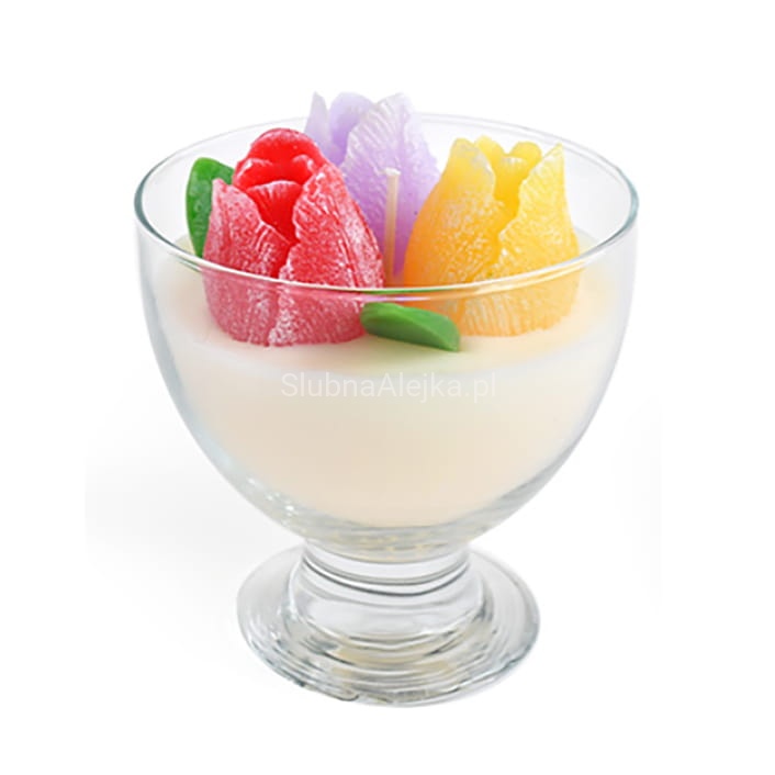 Świeca Zapachowa Miś w Pucharku to niezwykla urokliwa ozdoba oraz świetny pomysł na prezent. Wewnątrz pucharka wkomponowane są trzy tulipany z wosku. Wykonana ręcznie ale bardzo precyzyjnie z parafiny. Świece w uroczych pucharkach o różnych kolorach zestawione razem na podstawku z naszej oferty ozdobią każde wymagające wnętrze. Po świece sięgamy także wyjątkowo chętnie w okresie świątecznym. Towarzyszą nam zwykle podczas długich rodzinnych spotkań, budując przytulny i ciepły nastrój wnętrz. Wyjątkowo mocno kojarzą się z czasem świątecznym. Świece mogą być ciekawym elementem aranżacji przez cały rok.
