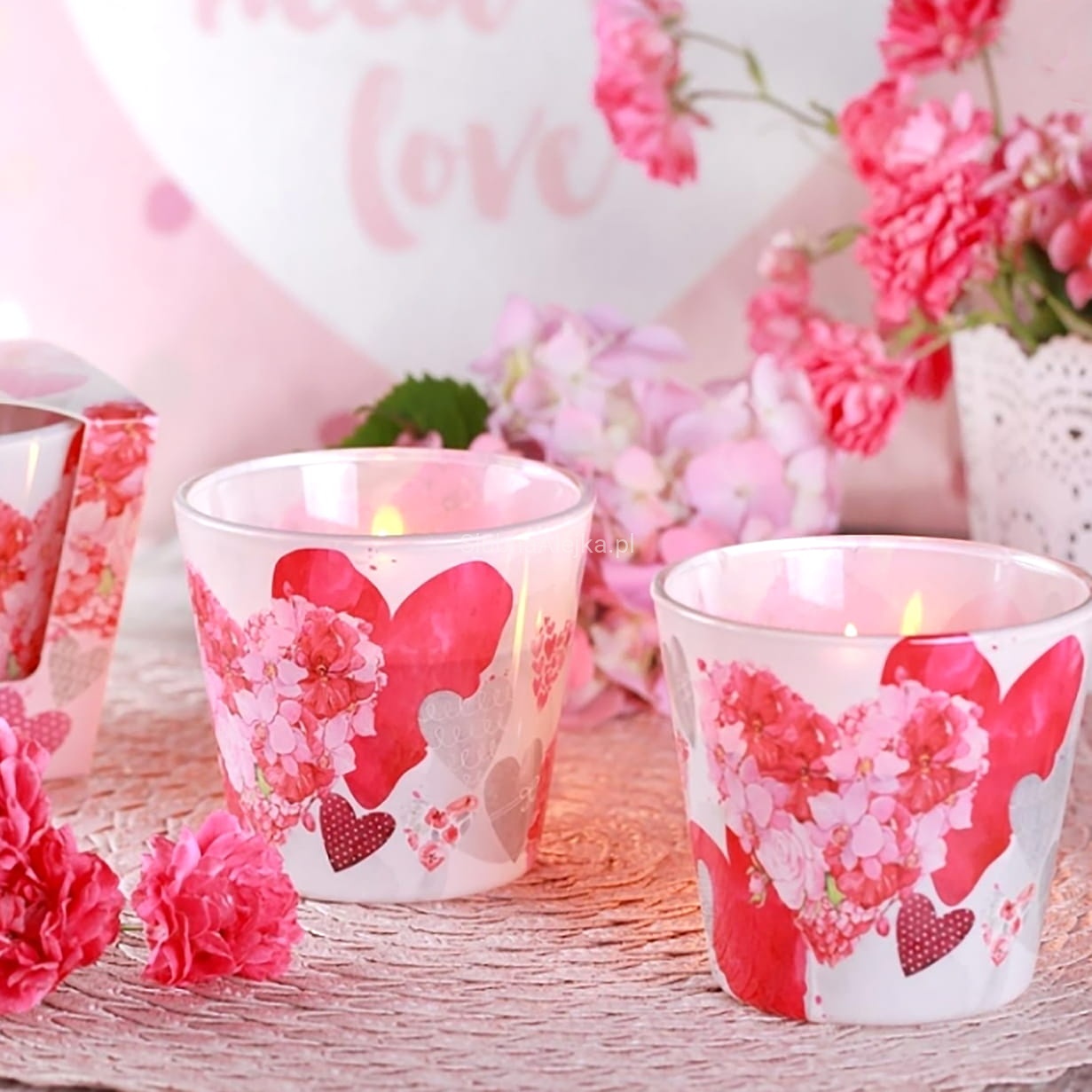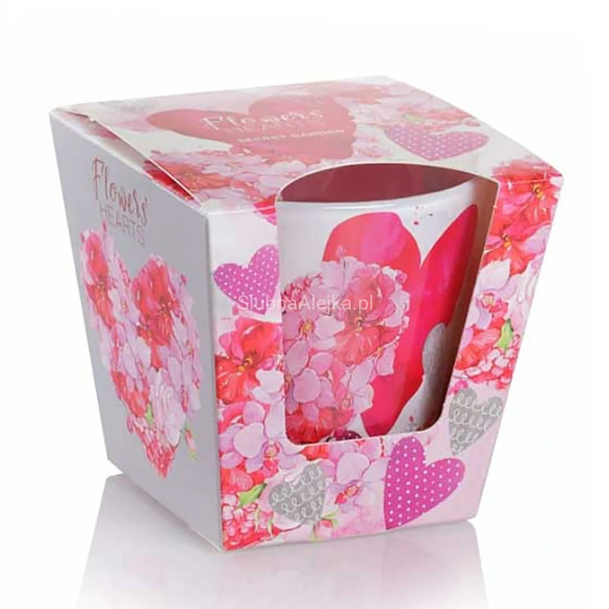 Świeca Ozdobna Zapachowa w Szkle Flowers Hearts Secret Garden renomowanego producenta świec Bartek. Wykonana z wysokiej
