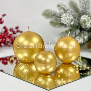 Świeca metalizowana kula w pięknym złotym odcieniu. Wyjątkowo elegancko prezentują się w aranżacji sali restauracyjnej, czy w eleganckim wnętrzu. Wyeksponowane na ciekawym podstawku zwrócą uwagę gości zarówno w wersji minimalistycznej jak i zdobionej dodatkami florystycznymi. Świece te wykonane są z największą precyzją i o długim czasie palenia. Aby świece kule stały się wyjątkową ozdobą, wystarczy użyć żwirku, czy kamieni lub motywów świątecznych. Dzięki temu każde wesele, czy przyjęcie okolicznościowe może być w prosty sposób udekorowane, bez dużych nakładów finansowych.