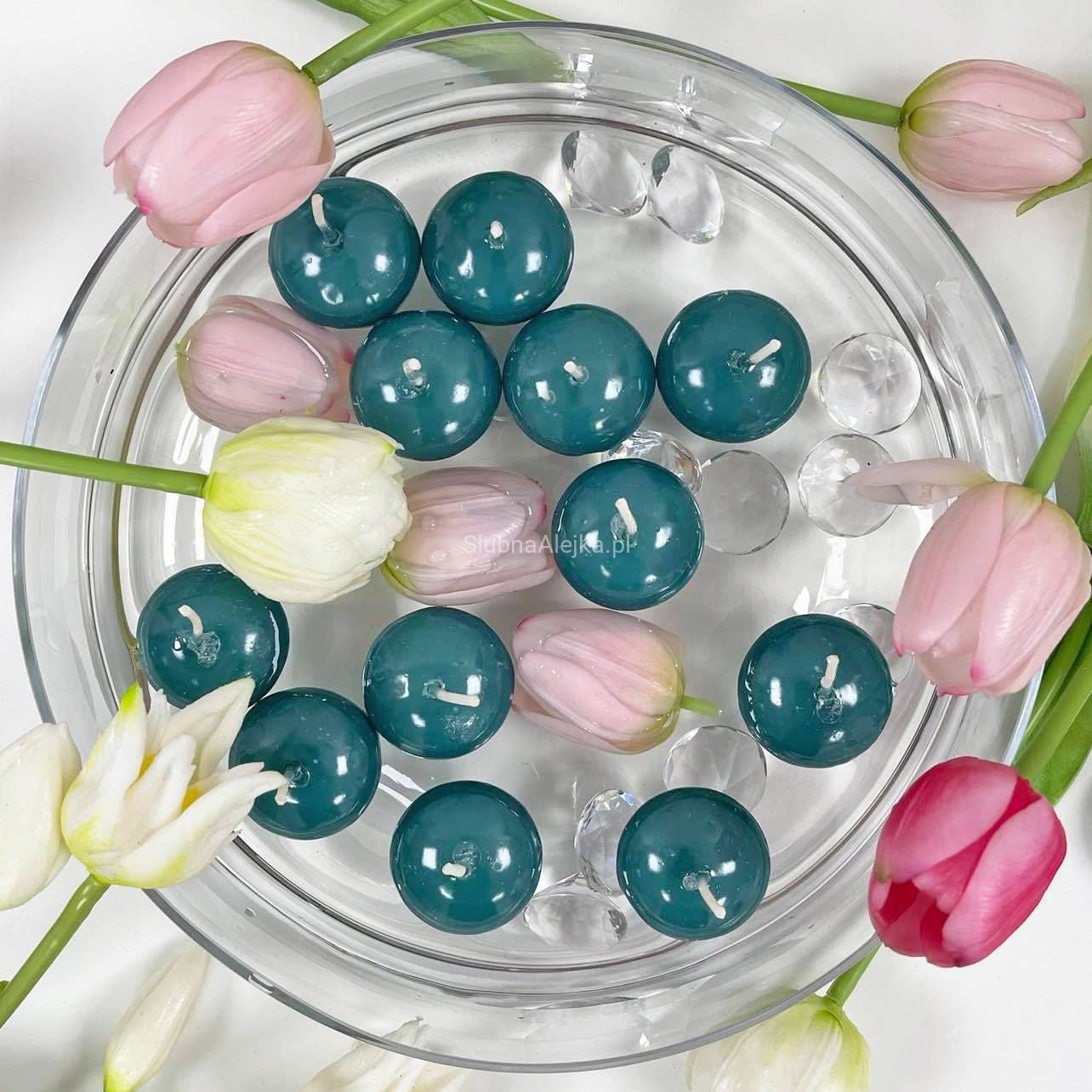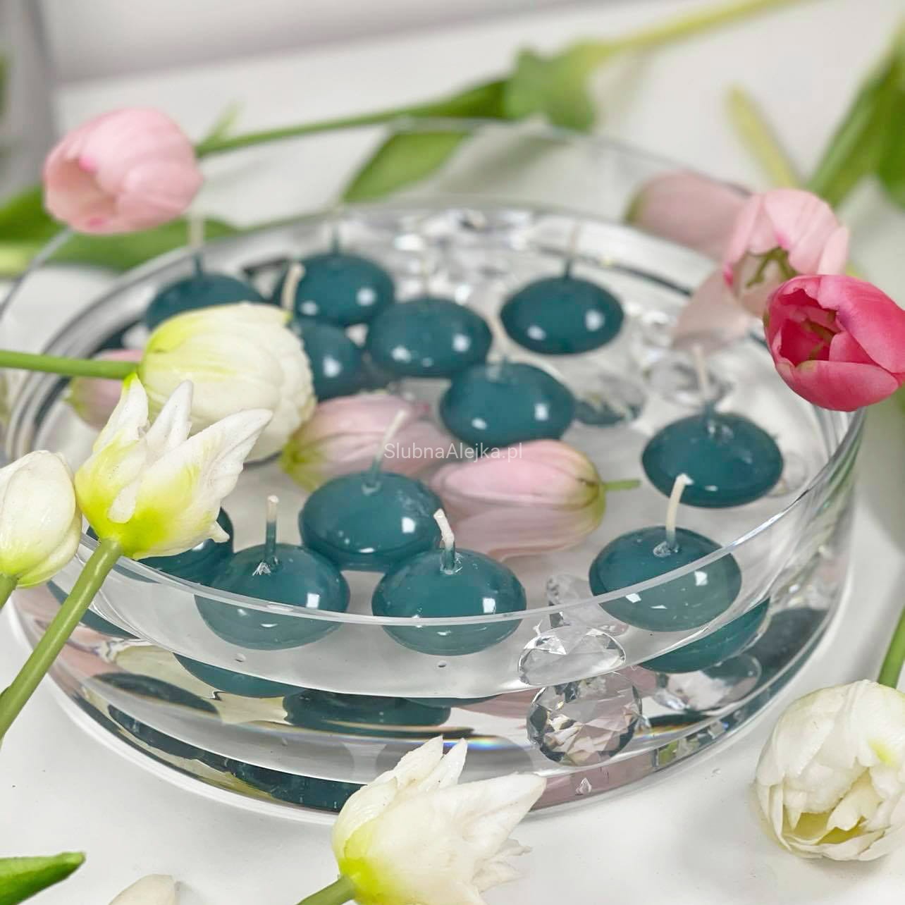 Świece towarzyszą nam zwykle podczas długich i chłodnych wieczorów, budując przytulny i ciepły nastrój wnętrz. Wyjątkowo mocno kojarzą się również z czasem świątecznym. Świece pływające mogą być ciekawym elementem aranżacji przez cały rok. Te bardzo eleganckie świeczki pływające z połyskiem w kształcie pływających kulek, umieszczone w szklanym naczyniu wypełnionym wodą tworzą niesamowite dekoracje stołu lub eleganckiego wnętrza. Czas palenia wynosi 5 godzin.