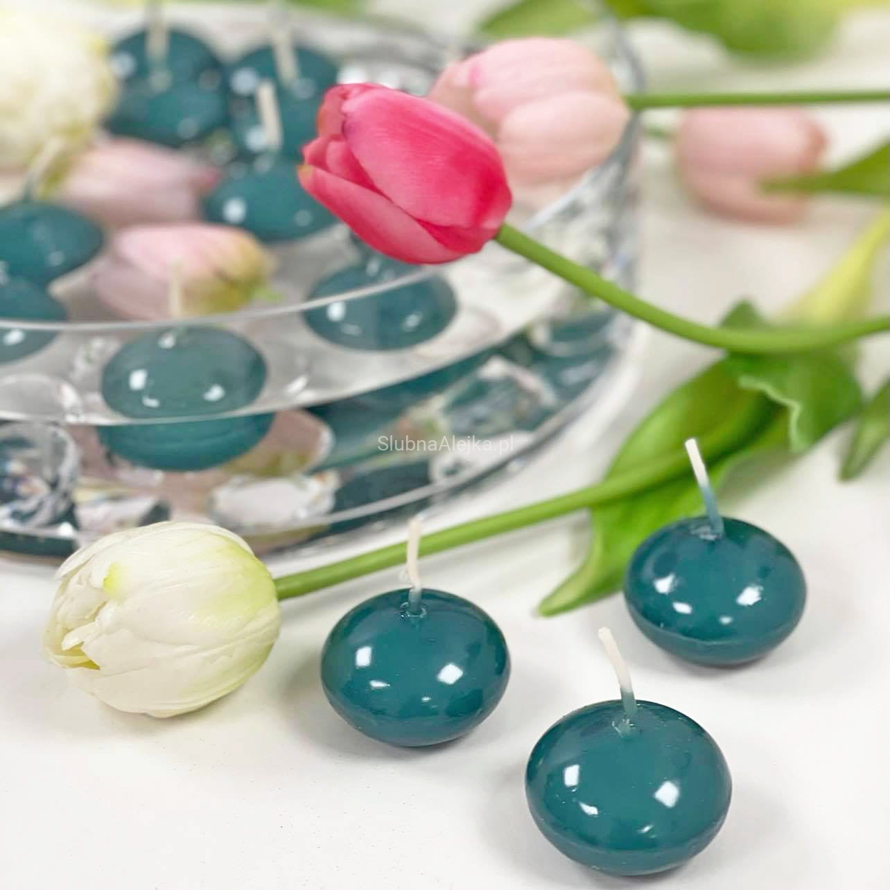 Świece Ozdobne Pływające Kulki 10szt. Zielony Morski