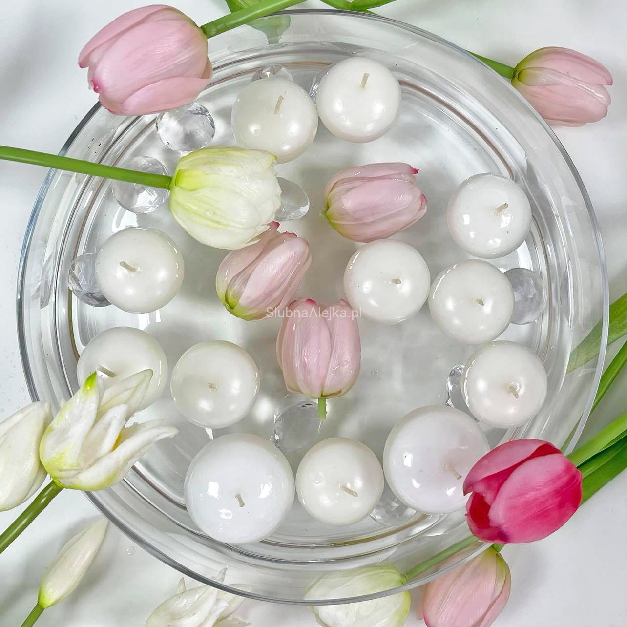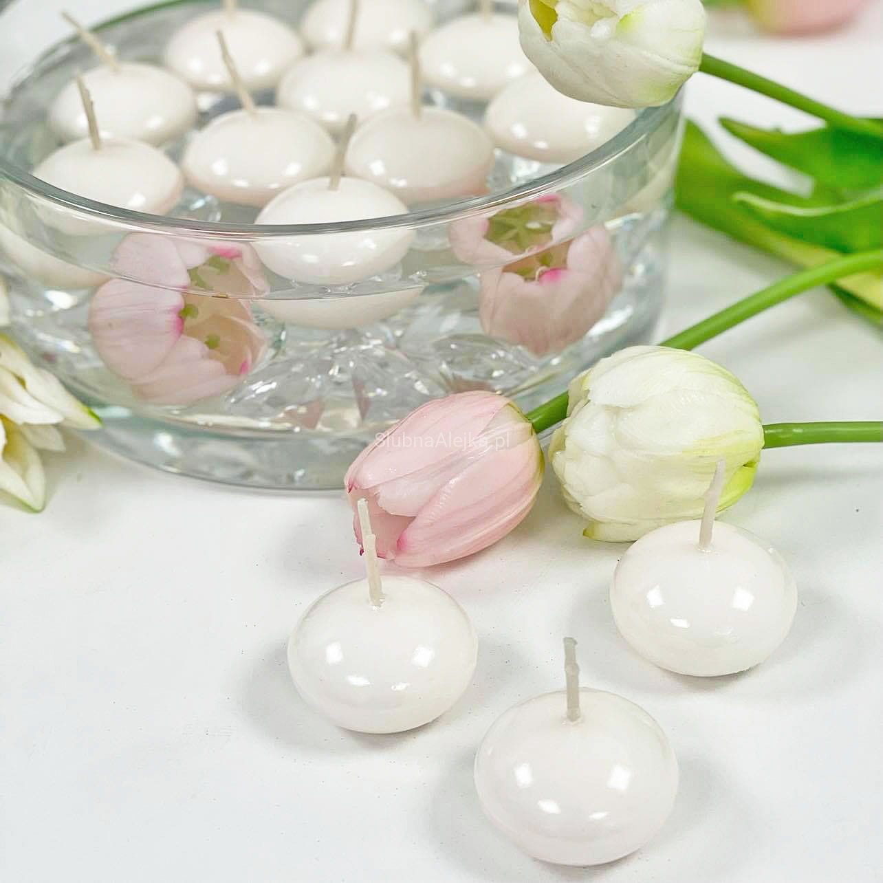 Świece Ozdobne Pływające Kulki 50szt. Białe Φ 4cm