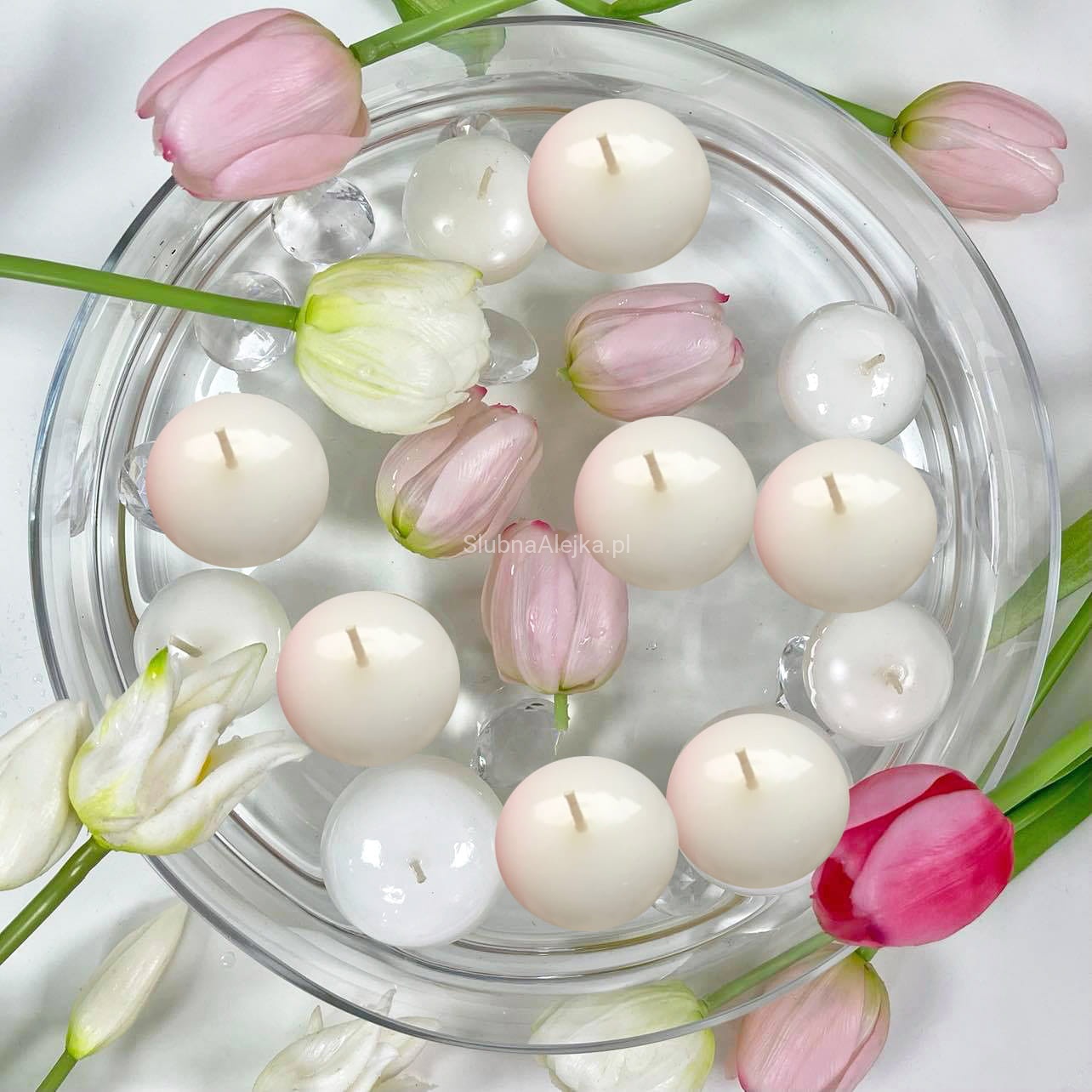 Świece Ozdobne Pływające Kulki 50szt. Kremowe Φ 4cm
