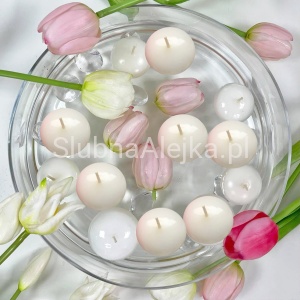 Świece towarzyszą nam zwykle podczas długich i chłodnych wieczorów, budując przytulny i ciepły nastrój wnętrz. Wyjątkowo mocno kojarzą się również z czasem świątecznym. Świece pływające mogą być ciekawym elementem aranżacji przez cały rok. Te bardzo eleganckie świeczki pływające w kształcie pływających kulek, umieszczone w szklanym naczyniu wypełnionym wodą tworzą niesamowite dekoracje stołu lub eleganckiego wnętrza. Czas palenia wynosi 2,5 godziny.