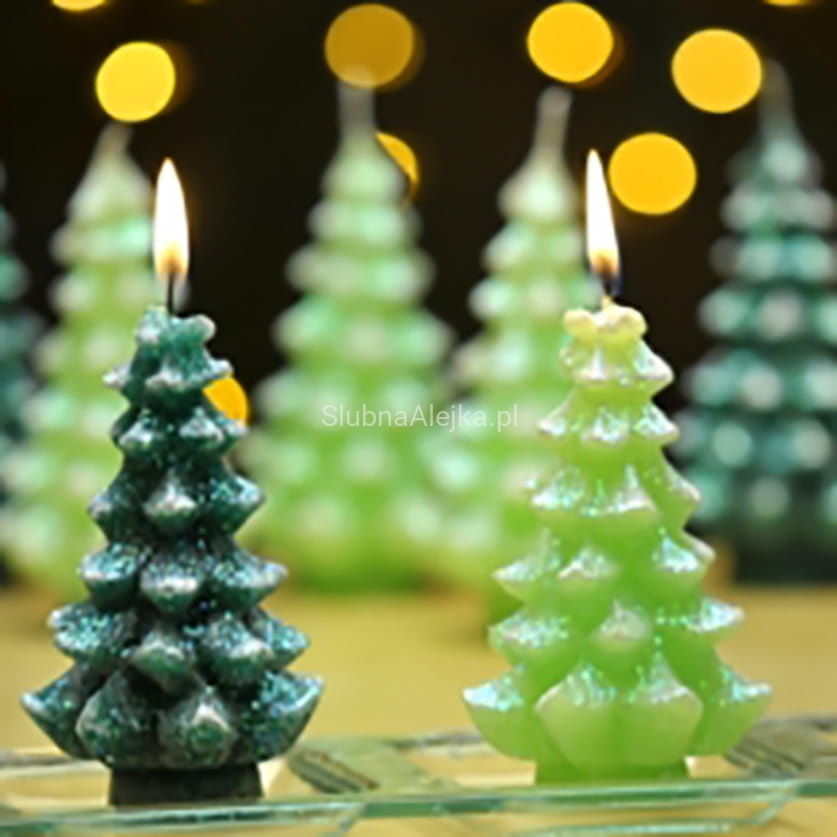 Mini choineczki pachnące lasem. Wniosą piękny, świąteczny aromat do każdego mieszkania. Świece wykonane profesjonalnie, w kolorach jasnej i ciemnej zieleni. Obsypane delikatnie brokatem. Będą wspaniałą dekoracją, a także świetnym pomysłem na prezent.