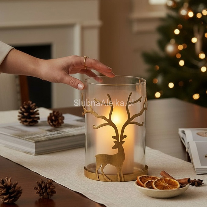 Świecznik Szklany Lampion Złoty Renifer to świąteczny, sprawdzony element aranżacji!