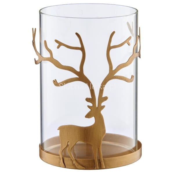 Świecznik Szklany Lampion Złoty Renifer 15 cm