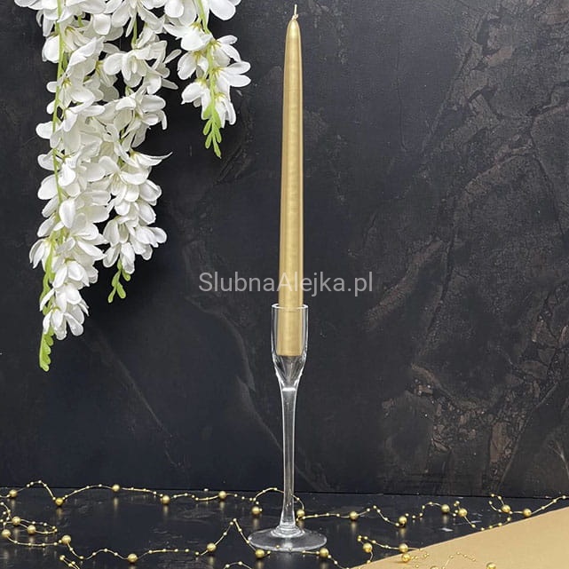 Świecznik szklany na nodze Stożkowy służy dekoracji stołu weselnego, dekoracji komunijnej lub dekoracji na chrzciny. Bez względu na rodzaj uroczystości, z łatwością można dopasować go do panującego w pomieszczeniu stylu za pomocą koloru świecy ozdobnej, dodatków pasmanteryjnych, np. wstążek czy kolorowej girlandy. Wybór kolorystyczny na naszej stronie jest tak duży, że z łatwością dopasujemy każde akcesorium do Państwa aranżacji.