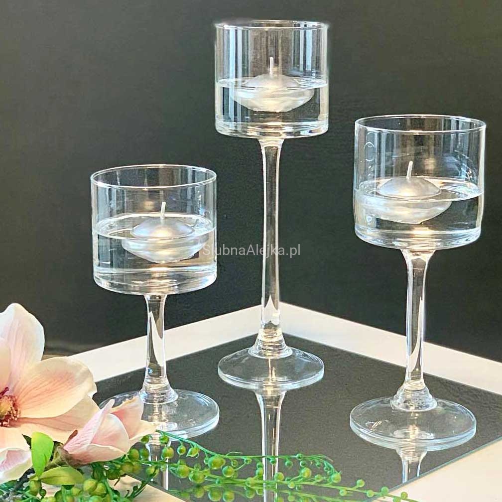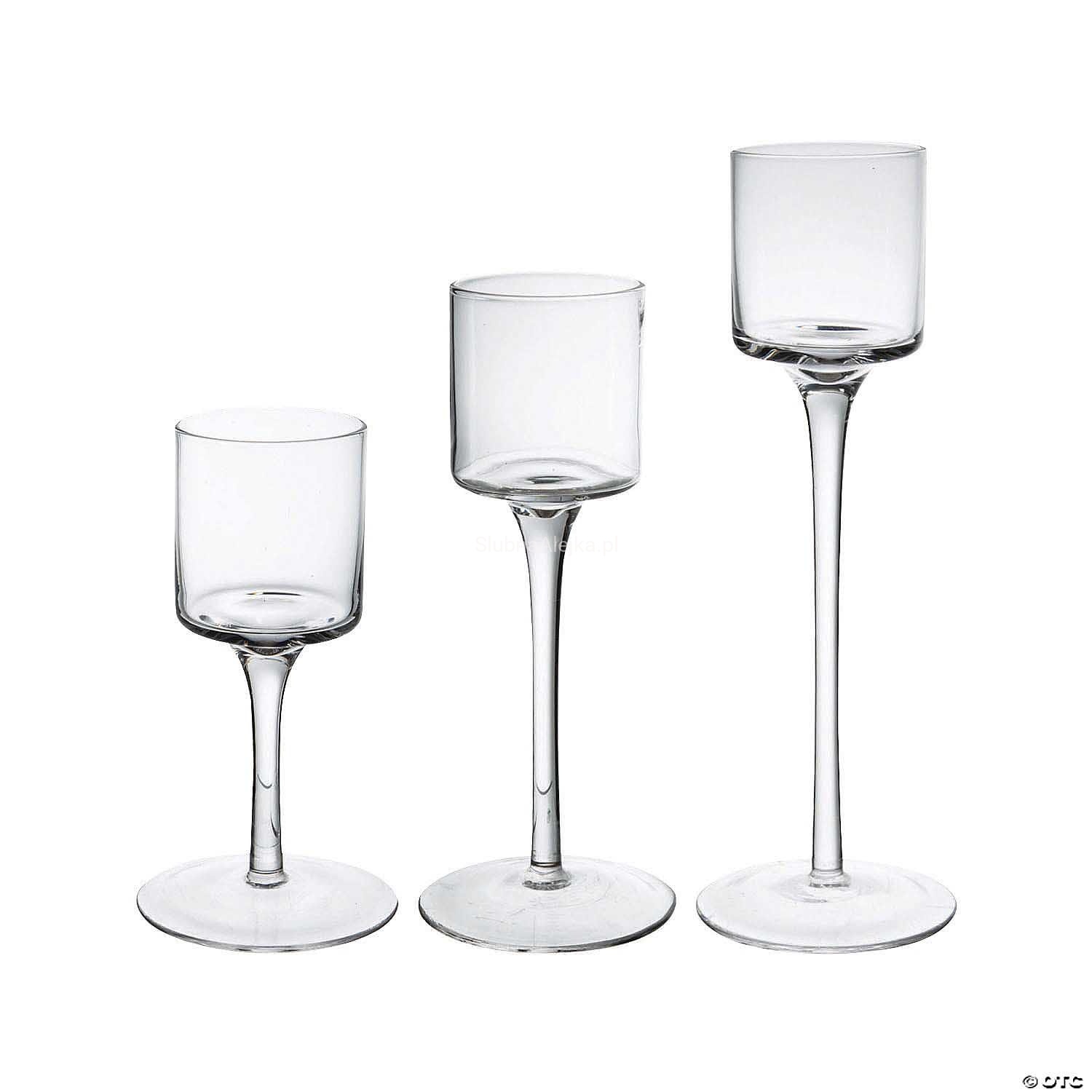 Świecznik Szklany na Nodze Koktajlowy 22,28,35 Zestaw 3 szt. Gładkie Szkło BESTSELLER!