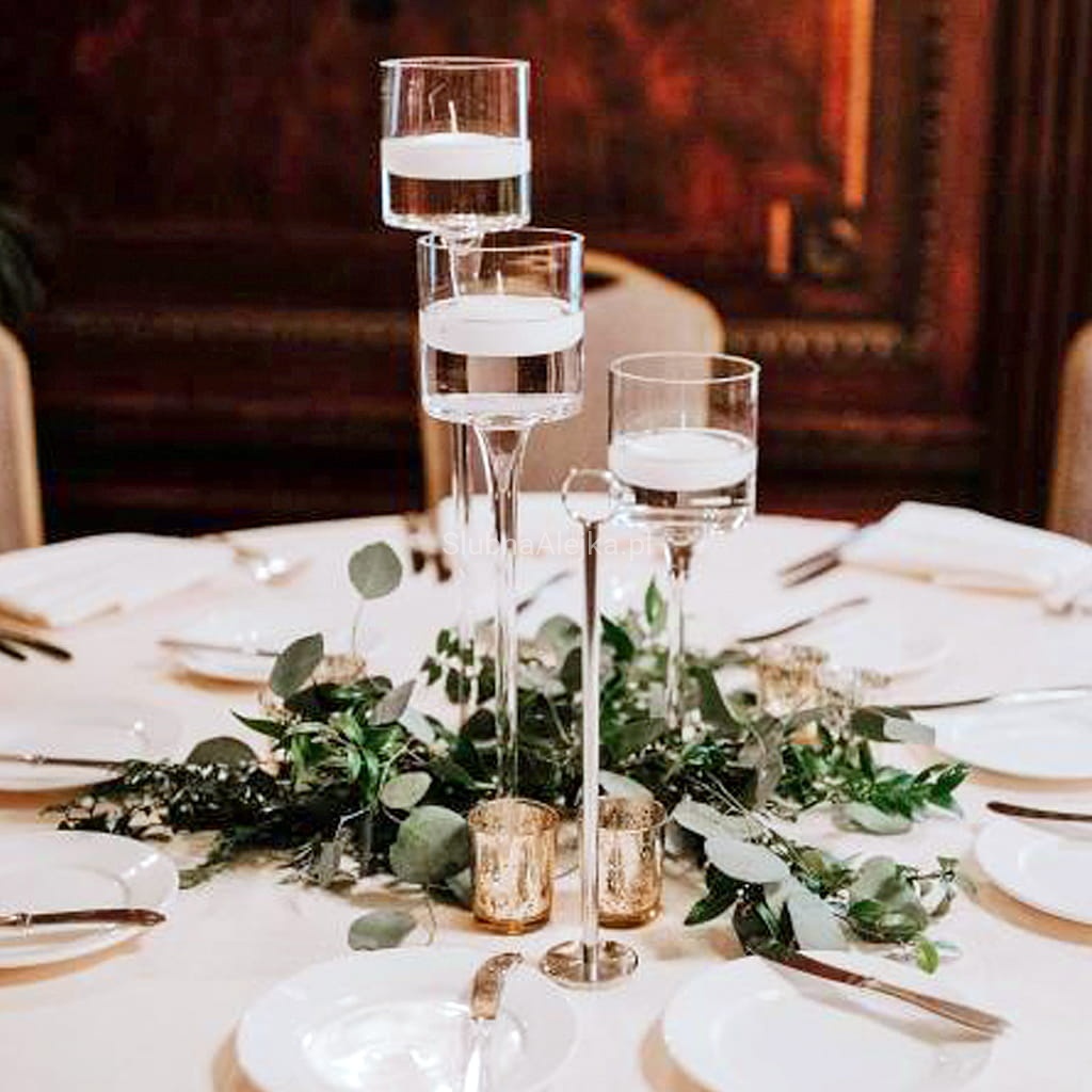 Świecznik szklany na nodze koktajlowy zestaw trzech wysokości - jak go wykorzystać w praktyce?