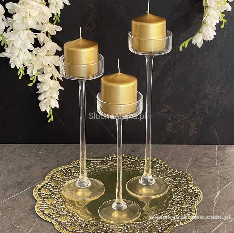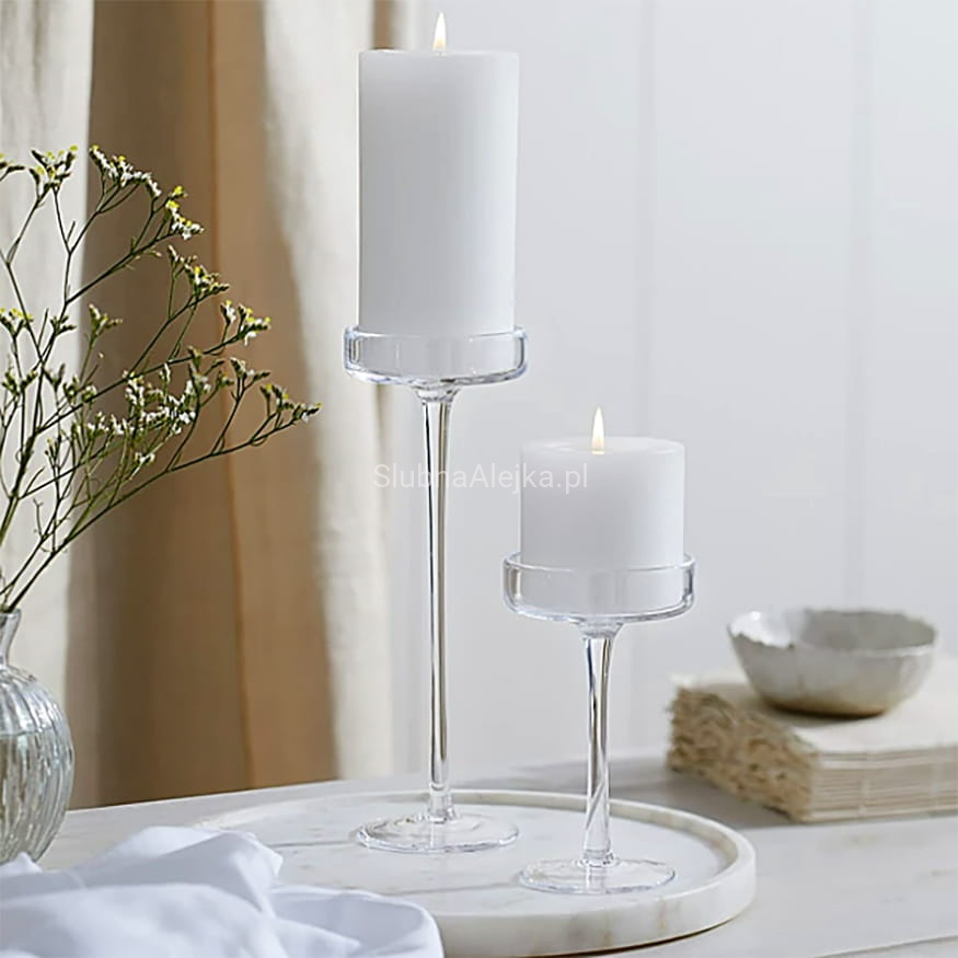 Świecznik szklany na nodze koktajlowy stanowi dekorację samą w sobie, szczególnie, kiedy występuje w zestawie bliźniaczych świeczników. Wówczas stanowią podstawę aranżacji stołu bez konieczności umieszczania na nim dodatkowych elementów. Świecznik szklany potrafi nadać całemu wnętrzu wyjątkową atmosferę, a to dzięki wielu możliwościom dekoracyjnym. Podłoże może stanowić ozdobny żwir lub piasek, a na nim dopiero stawiamy świecę pieńkową.