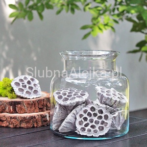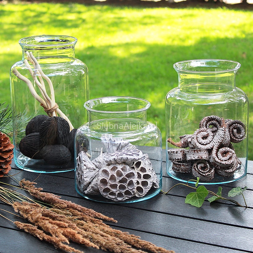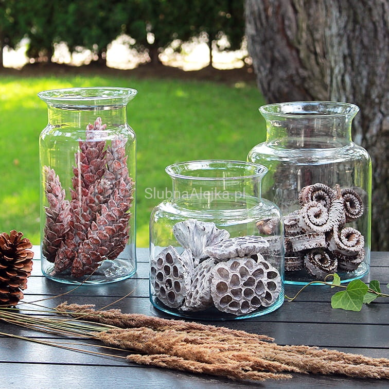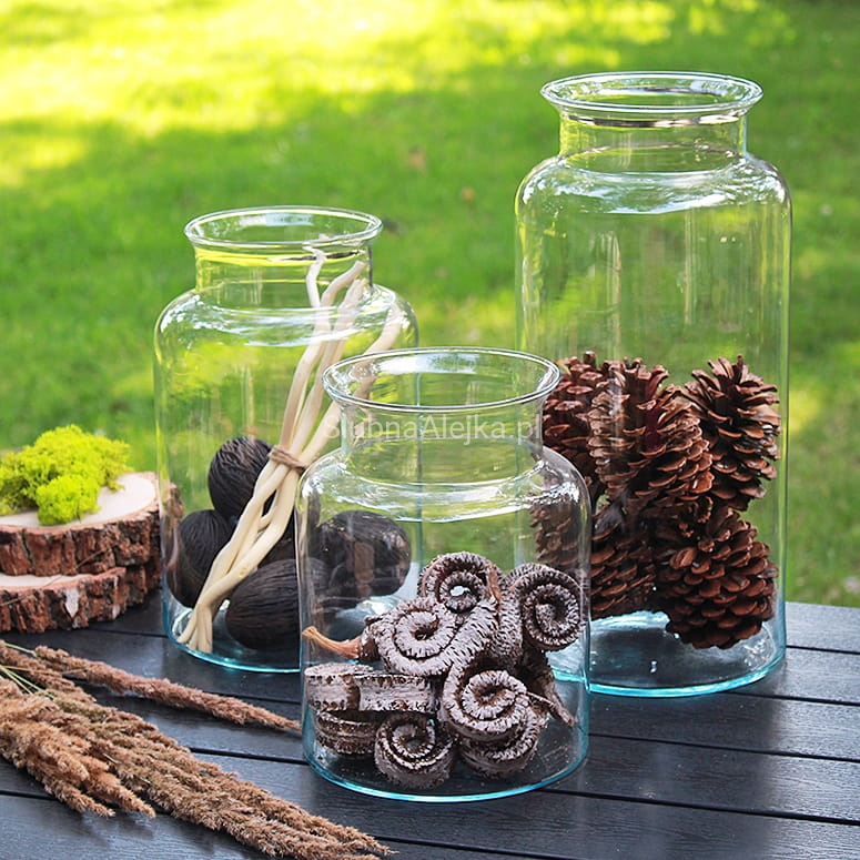 Szklany Słój Las w Szkle 20cm ϕ19cm to najmniejszy element kolekcji szklanych słojów do aranżacji. Słój ma prosty kształt i jest wykonany z cienkiego, bezbarwnego szkła ekologicznego. Naczynie ma wysokość 20 cm i średnicę 15 cm, a dzięki ozdobnemu przewężeniu w górnej części słój można dodatkowo ozdobić – w zależności od pożądanego charakteru dekoracji przewiązać sznurkiem, kolorową wstążką lub rafią.