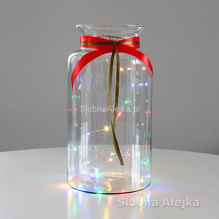 Szklany Słój Las w Szkle Wysoki 35cm ϕ18cm jest szklanym elementem dekoracyjnym używanym w dekoracjach ślubnych, komunijnych, dekoracjach na chrzest. W słoju o wysokości 25 cm i średnicy 18 cm można zaaranżować dekoracje na stoły weselne lub nastrojowe lampiony. Słój jest wykonany z cienkiego, bezbarwnego szkła ekologicznego. Zwężona szyjka słoja pozwala na przewiązanie go ozdobnym sznurkiem, wstążką lub rafią.