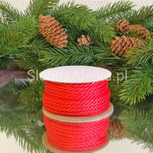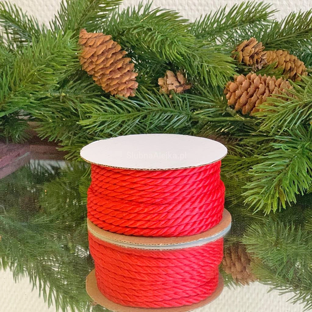 Sznurek czerwony o grubym splocie. Bardzo przydatny do dekoracji i pakowania prezentów, czy świątecznych ozdób. Bardzo dobrze komponuje się z dekoracjami w stylu kraft i merry christmas