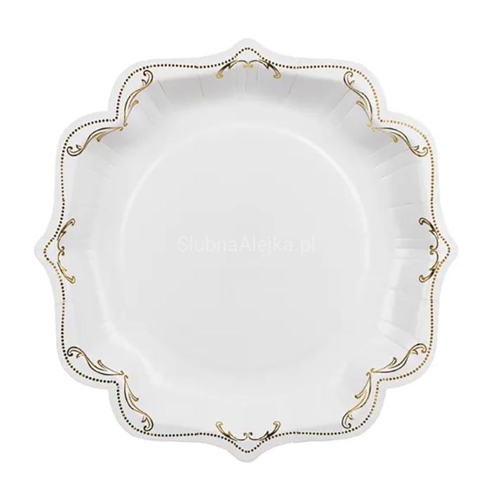 Talerzyki Białe Ozdobne ze Złotym Ornamentem Ślub Komunia 26 cm 6szt.