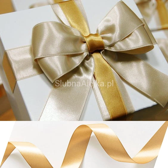 Tasiemka Satynowa Jasne Złoto do Pakowania Prezentów 2,5cm