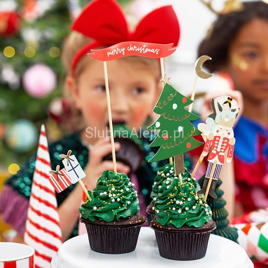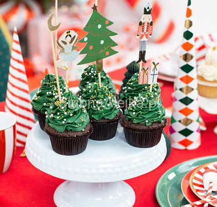 Toppery na tort Dziadek do orzechów, mix wzorów i kolorów, zestaw zawiera 6 topperów na pikach, wysokość od ok. 8.5 do ok. 19 cm.
