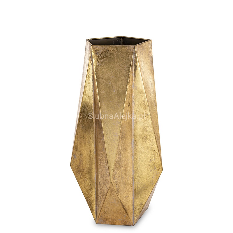 Wazon Geometric złoty to elegancka, złota dekoracja, która cieszy się dużym uznaniem wśród osób ceniących ponadczasowy, klasyczny design. Dzięki metalowej powierzchni wazon ten zyskuje wyjątkowo nowoczesny i elegancki design. Jest to produkt idealny do dekoracji przestrzeni domowj, restauracji, hotelu oraz na różnego rodzaju uroczystości i przyjęcia.
