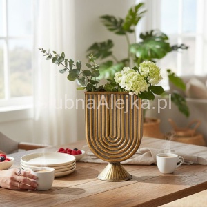 Wazon Złoty na podstawie jest bardzo uniwersalny. Może być używany jako tradycyjny wazon, w którym najlepiej umieścić bukiety z kwiatów ciętych. Jest również doskonałym wyborem na większe wydarzenia. Świetnie sprawdzi się na dużych przyjęciach, bankietach i weselach, tworząc spójną i elegancką dekorację.