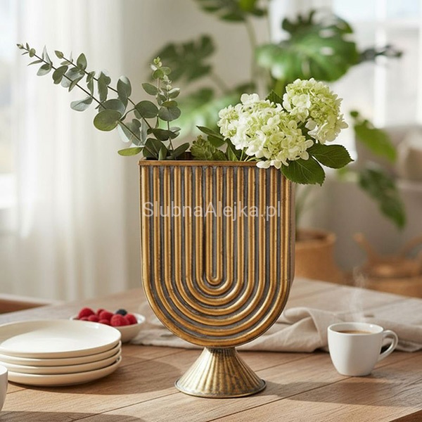 Wazon Złoty na podstawie jest bardzo uniwersalny. Może być używany jako tradycyjny wazon, w którym najlepiej umieścić bukiety z kwiatów ciętych. Jest również doskonałym wyborem na większe wydarzenia. Świetnie sprawdzi się na dużych przyjęciach, bankietach i weselach, tworząc spójną i elegancką dekorację.