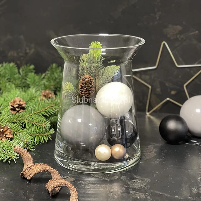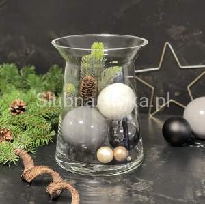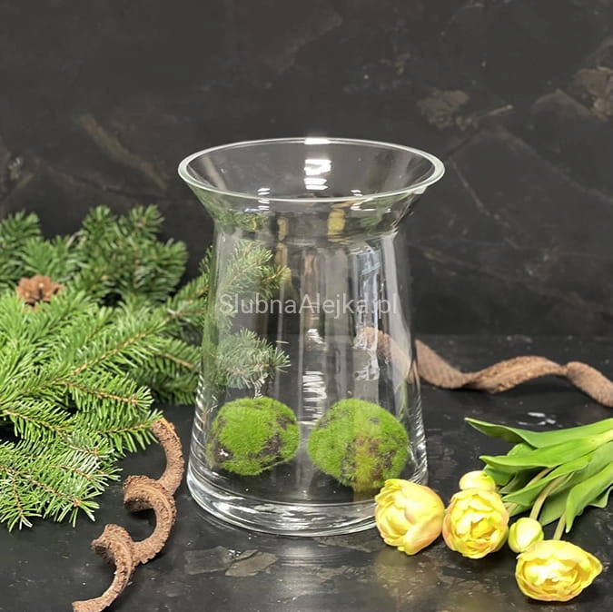 Wazon szklany Aruna jako dekoracja na każdy stół, pięknie eksponuje strojne bukiety kwiatów. W zależności od jakie kwiaty chcemy do niego włożyć: sztuczne czy prawdziwe, taką oprawę dla nich możemy zastosować. Przy prawdziwych kwiatach będą to wstążki, oplatające wazon wypełniony wodą, a przy sztucznych – szereg akcesoriów i dodatków, którymi można wyłożyć go od środka.