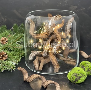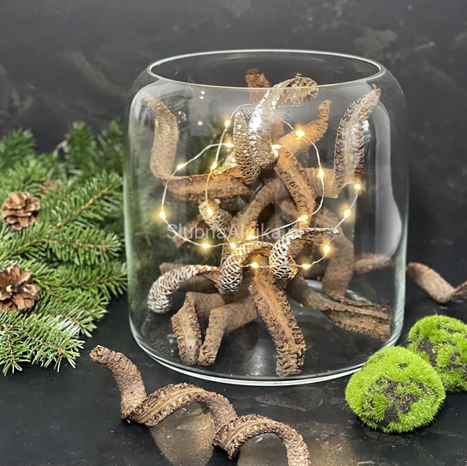 - Gałązki świerkowe, lampki LED, susz egzotyczny