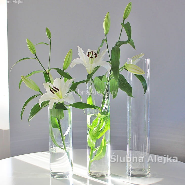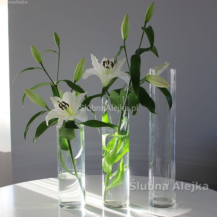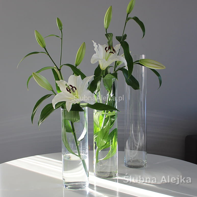 Wazon szklany cylinder mocne szkło w kształcie tuby nie tylko jest ozdobą kościelną lub ślubną. Może być z powodzeniem dodatkiem do każdego rodzaju aranżacji, czy to jako faktyczny wazon, czy jako lampion. Żeby stał się tym ostatnim, należy wlać do niego wodę do dowolnego poziomu. Następnie ułożyć na powierzchni świecę pływającą, rozmiarem zgodną ze średnicą samego wazonu. Aby lampion był bardziej ozdobny, można dodać do środka szklane kolorowe kule lub ozdobny żwirek. Pięknie wygląda w nim również zatopiony kwiat orchidei.