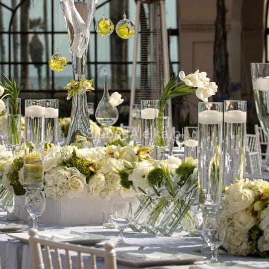 Jeśli zakupimy kilka wazonów szklanych cylindrów, można ustawić je w równej odległości względem siebie na weselnych stołach, tworząc romantyczną iluminację. Można je wykorzystać również jako gadżet na wieczór panieński i wypełnić zatopionymi różami.