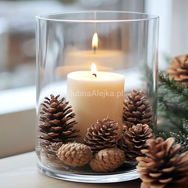 Wazon szklany cylinder szeroki może być wspaniałą ozdobą ślubną zarówno na sali weselnej, jak i w kościele. Elegancko prezentuje się z białymi kwiatami i szeroką wstążką. Dość popularnym trendem jest też topienie w środku sztucznych lub prawdziwych orchidei i uzupełnianie aranżacji ozdobnymi kamieniami. W tej sposób powstaje intrygująca dekoracja, przyciągająca uwagę gości.