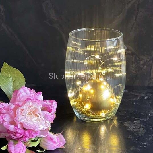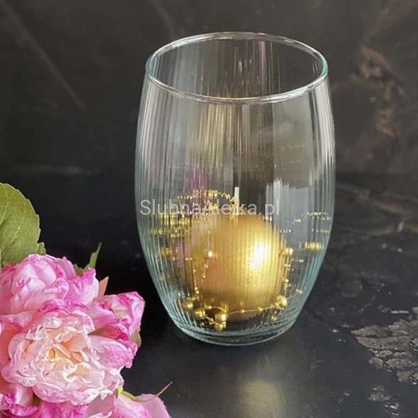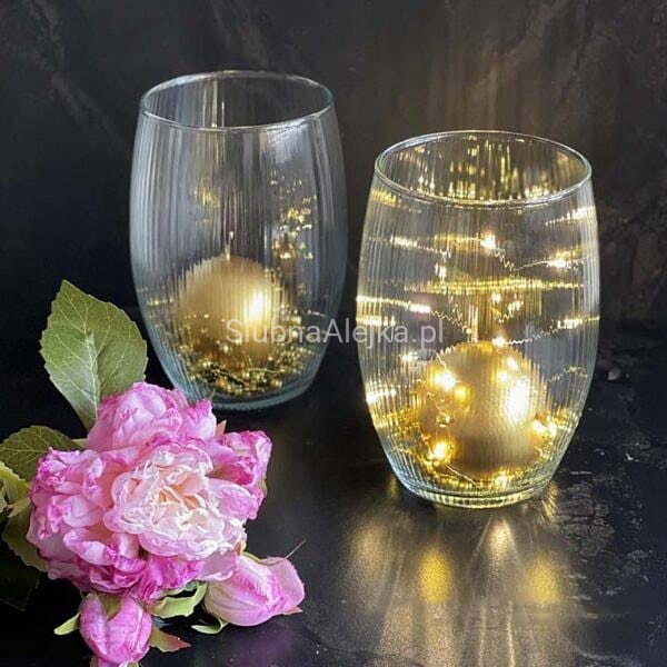 Wazon szklany Optyk z charakterystycznym prążkowanym wzorem szkła jako dekoracja na każdy stół, pięknie eksponuje strojne bukiety kwiatów. W zależności od jakie kwiaty chcemy do niego włożyć: sztuczne czy prawdziwe, taką oprawę dla nich możemy zastosować. Przy prawdziwych kwiatach będą to wstążki, oplatające wazon wypełniony wodą, a przy sztucznych – szereg akcesoriów i dodatków, którymi można wyłożyć go od środka.