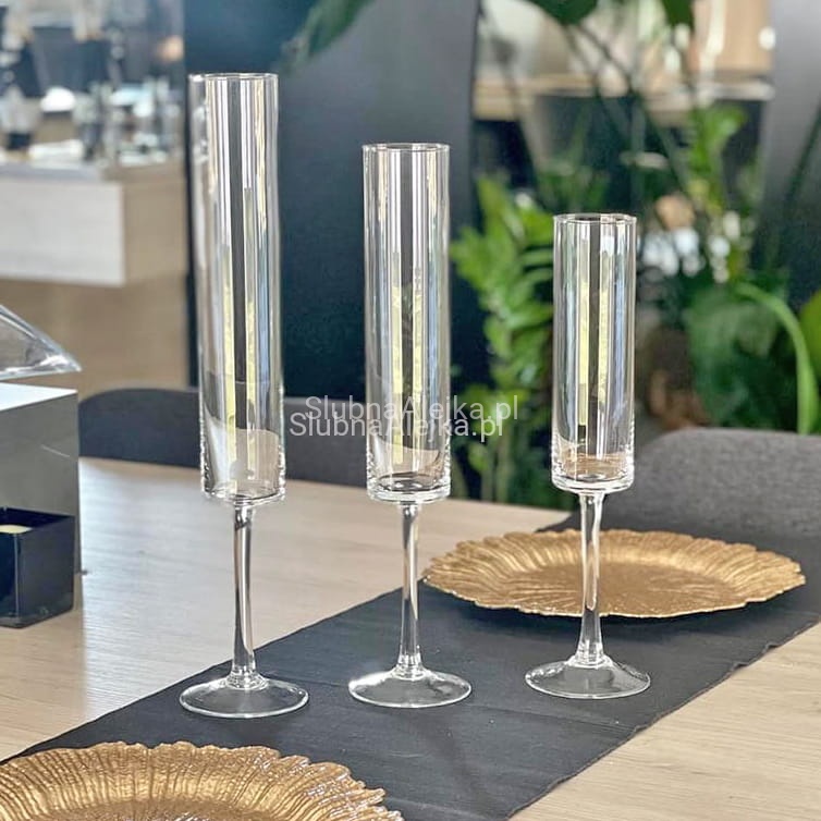 Wazon szklany tuba na długiej nodze – dekoracja ślubna w pełnej okazałości