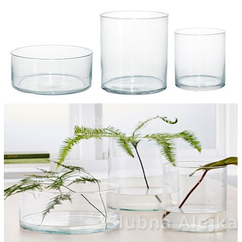 Wazon szklany zestaw cylindrów to propozycja dla tych, którzy w prosty i szybki sposób chcą udekorować mieszkanie lub salę weselną. 3 wazony szklane cylindry o różnej wysokości i średnicy tworzą kompozycję, która może zaskoczyć uniwersalnością zastosowania. Z jednej strony mogą to być 3 wazony, zgodnie z pierwotnym przeznaczeniem. Z drugiej – świeczniki, a z trzeciej – dodatki, które można wypełnić dowolnie wyselekcjonowaną zawartością.