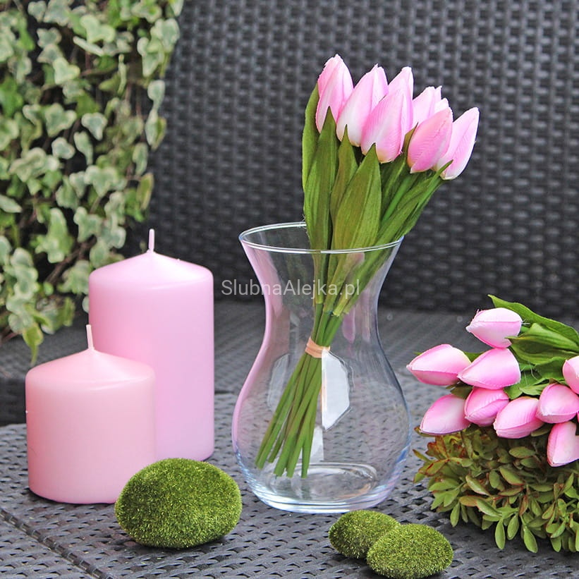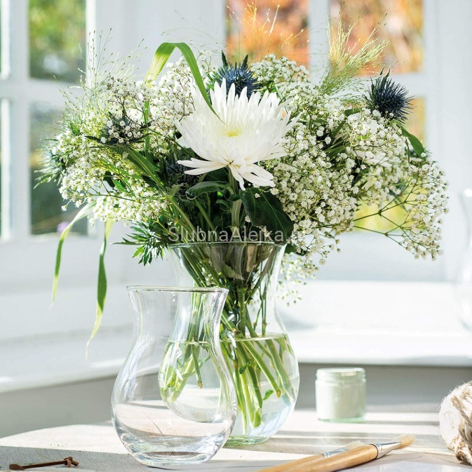 Wazon szklany do bukietów Leo idealnie sprawdzi się jako dekoracja ślubna, mieszcząc w sobie białe bukiety kwiatów. Jako dekoracja na stół weselny zaprezentuje przed nami wspaniałe możliwości aranżacyjne, dając się przeistoczyć w piękny dodatek. Dodatkowo, w czasie uroczystości rodzinnych, jako dekoracja na chrzciny i dekoracja komunijna, również będzie wyróżniać się krystalicznie przejrzystym szkłem wydobywającym piękno każdego kwiatka.