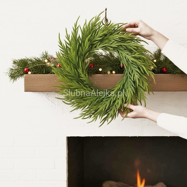 Wianek Świąteczny Sztuczny Świerk Zielony 40cm - idealna ozdoba na drzwi