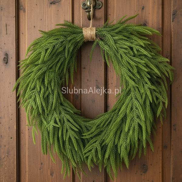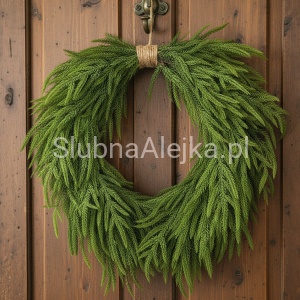 Wianek Świąteczny Sztuczny Świerk Zielony z Jutą 60cm - idealna ozdoba na drzwi