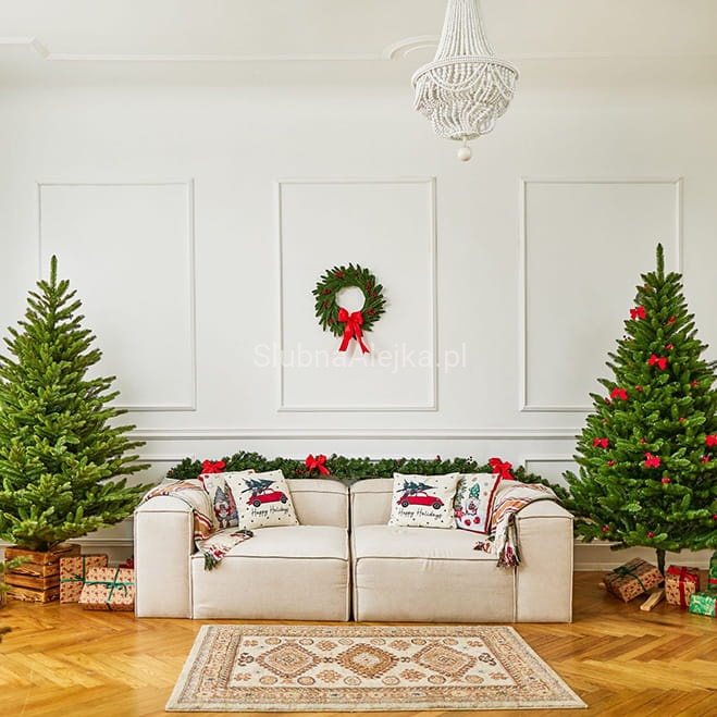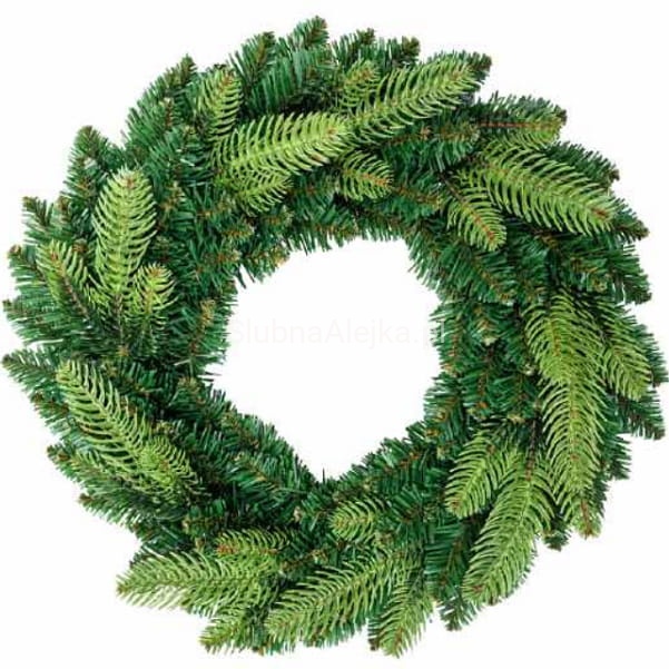 Piękny w swej prostocie wianek wykonany z wysokiej jakości tworzywa PE i PVC. Najczęściej stanowi bazę do wszelkich kompozycji florystycznych, ale może być także samodzielną ozdobą świąteczną. Do stosowania w domu, jak i na zewnątrz jako ozdoba tarasu, czy ogrodu. Łatwo przymocować do niego dodatkowe aplikacje. Udekorowany bombkami lub wstążkami znajduje swoje zastosowanie jako ozdoba świąteczna. Najpopularniejszym miejscem na powieszenie wianka są drzwi wejściowe restauracji lub domu, ale można go także umieścić na ścianie. Ten żywo zielony, pachnący lasem wianek stanowi idealną bazę do wykonania pięknej bożonarodzeniowej dekoracji w przystępnej cenie.