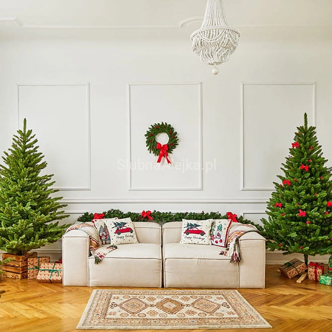 Piękny w swej prostocie wianek wykonany z wysokiej jakości tworzywa PE i PVC. Najczęściej stanowi bazę do wszelkich kompozycji florystycznych, ale może być także samodzielną ozdobą świąteczną. Do stosowania w domu, jak i na zewnątrz jako ozdoba tarasu, czy ogrodu. Łatwo przymocować do niego dodatkowe aplikacje. Udekorowany bombkami lub wstążkami znajduje swoje zastosowanie jako ozdoba świąteczna. Najpopularniejszym miejscem na powieszenie wianka są drzwi wejściowe restauracji lub domu, ale można go także umieścić na ścianie. Ten żywo zielony, pachnący lasem wianek stanowi idealną bazę do wykonania pięknej bożonarodzeniowej dekoracji w przystępnej cenie.
