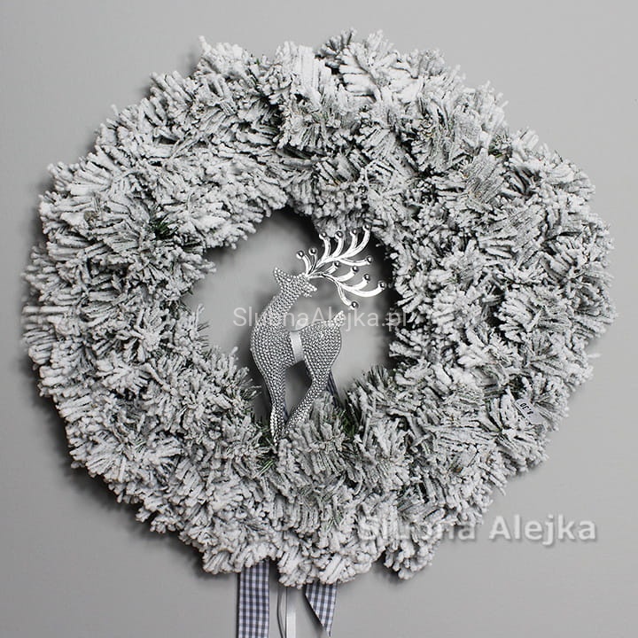 Oferujemy Państwu piękny w swej prostocie wianek wykonany ze sztucznych gałązek zielonego świerku. Całość oprószona sztucznym śniegiem, który nie sypie się i nie brudzi. Najczęściej stanowi bazę do wszelkich kompozycji florystycznych, ale może być także samodzielną ozdobą świąteczną. Do stosowania w domu, jak i na zewnątrz jako ozdoba tarasu, czy ogrodu. Łatwo przymocować do niego dodatkowe aplikacje. Udekorowany bombkami lub wstążkami znajduje swoje zastosowanie jako ozdoba świąteczna. Najpopularniejszym miejscem na powieszenie wianka są drzwi wejściowe restauracji lub domu, ale można go także umieścić na ścianie. Ten bajkowo ośnieżony wianek stanowi idealną bazę do wykonania pięknej bożonarodzeniowej dekoracji w przystępnej cenie. Wianek sprzedawany jest bez ozdób.