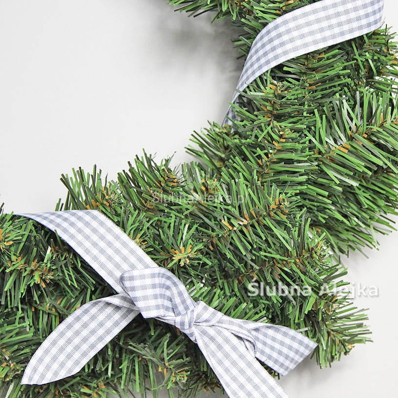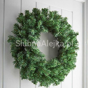 Piękny w swej prostocie wianek wykonany ze sztucznych gałązek zielonego świerku. Najczęściej stanowi bazę do wszelkich kompozycji florystycznych, ale może być także samodzielną ozdobą świąteczną. Do stosowania w domu, jak i na zewnątrz jako ozdoba tarasu, czy ogrodu. Łatwo przymocować do niego dodatkowe aplikacje. Udekorowany bombkami lub wstążkami znajduje swoje zastosowanie jako ozdoba świąteczna. Najpopularniejszym miejscem na powieszenie wianka są drzwi wejściowe restauracji lub domu, ale można go także umieścić na ścianie. Ten żywo zielony wianek stanowi idealną bazę do wykonania pięknej bożonarodzeniowej dekoracji w przystępnej cenie. Wianek sprzedawany jest bez ozdób.